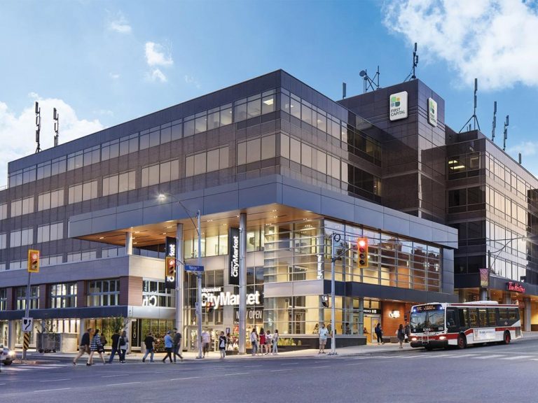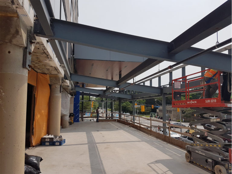The concept is part of a property upgrade by First Capital Realty, located at 3080 Yonge Street in the Yonge and Lawrence neighbourhood, to offer residents increased mixed-use commercial, retail space at grade level. The new concept was to create two possible leasable spaces under the second floor retractable roof, Anatomy Fitness opted to lease both areas.