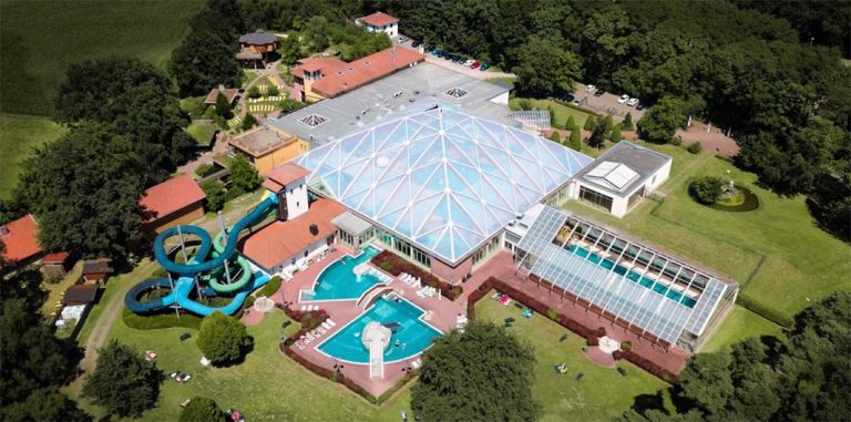 The owners hired renown firm Geising + Böker Architekton to create a water world and spa facility. The project includes a retractable roof aquatic center by OpenAire and an ETFE fixed structure by others.