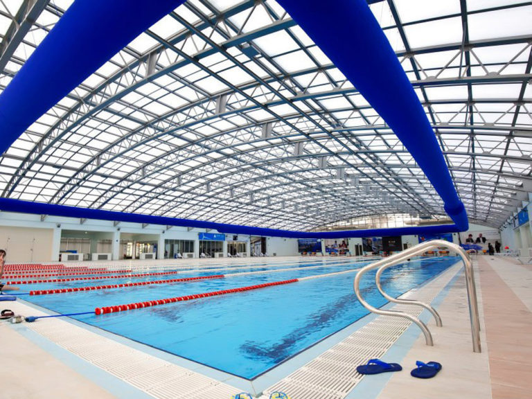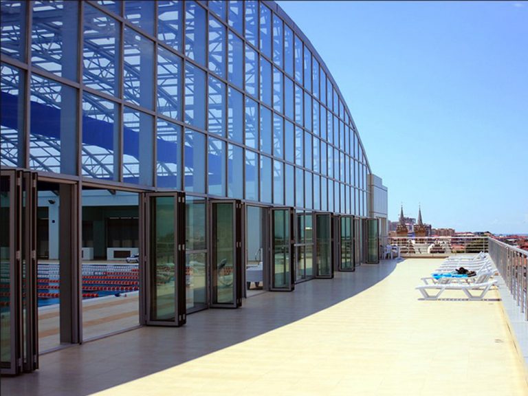 OpenAire’s retractable roof has a number of benefits, all of which offer energy and dollar savings in comparison with traditionally built enclosures. Their maintenance-free, thermally broken aluminum framing system withstands moist, chemical aquatic atmospheres and never needs to be repainted. The roof and insulated glass sides allow plenty of light to flood in, resulting in additional savings on lighting costs. Batumi Plaza will now draw more users, patrons and tenants to the building by offering all-season enjoyment and thereby maximizing usage and revenues as well.