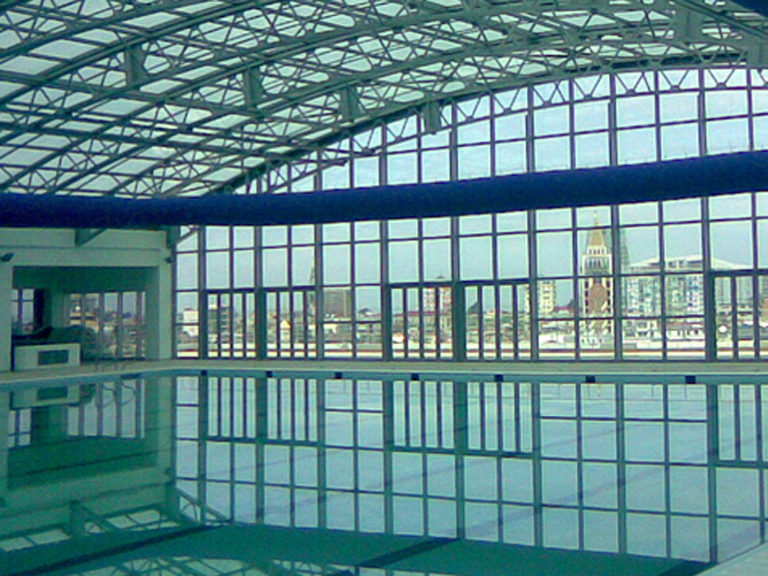 Developers of Batumi Plaza, located in the Republic of Georgia, were looking to add a showpiece swimming facility on the roof of their massive six-storey luxury facility. Complete with a high-end shopping mall, a multiplex cinema, restaurants, offices, conference facilities, and the 53-room 5-star Mardi Plaza hotel hotel; the rooftop pool of Batumi Plaza needed a retractable roof component that would offer swimmers sunlight, fresh air on nice days, but have the ability to close on colder, rainy days to protect swimmers from the elements.