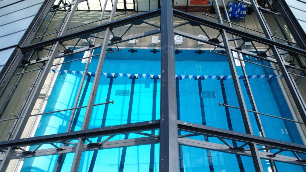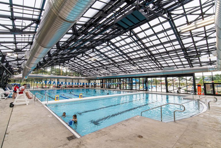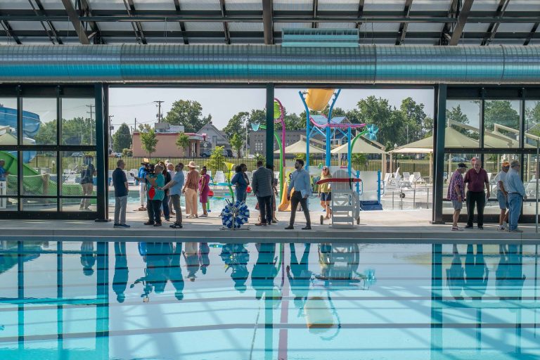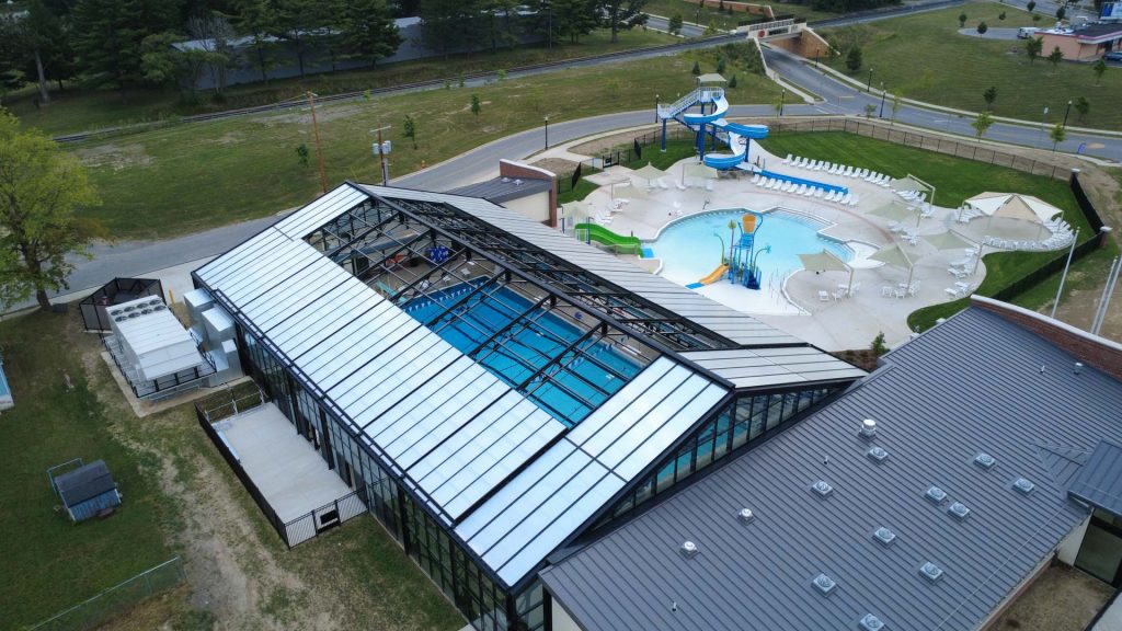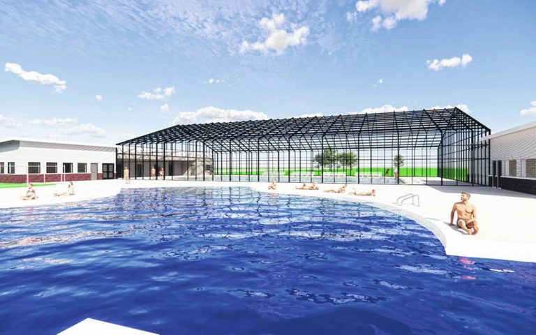 The new Lima Community Aquatic Center will be a 90ft wide by 145ft long aquatic enclosure that includes a custom sliding wall. When open the 62ft wide opening will create a seamless indoor outdoor environment spanning between the adjacent indoor pool and outdoor pool/patio spaces.