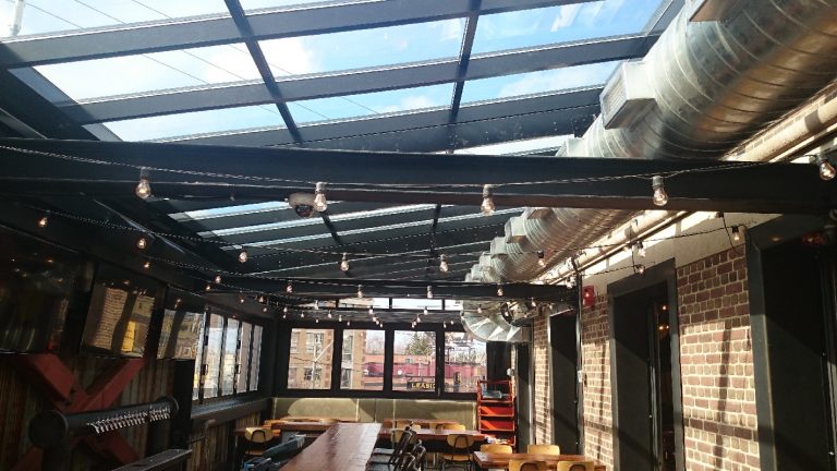 OpenAire has completed a brand-new addition to LOCAL Leaside with the installation of a spectacular 800 square foot retractable glass enclosure for the patio bar area. This innovative roof design is virtually maintenance free and will allow LOCAL Leaside to take full advantage of its floor space all year round. OpenAire’s panoramic design reduces energy costs by letting in the warmth and light from the sun, with minimal need for artificial light during the day. The customized automated roof allows guests to enjoy an outdoor dining experience, letting in the sun and breezes of summer and keeping out the cold of winter.