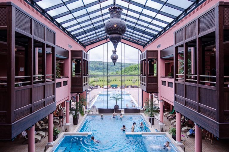 Saarland Therme is a spa with a total area of 4,656m2 including a wide variety of thermal baths, restaurants and spa service areas. The design of the entire complex is based on a Moorish-Oriental style.