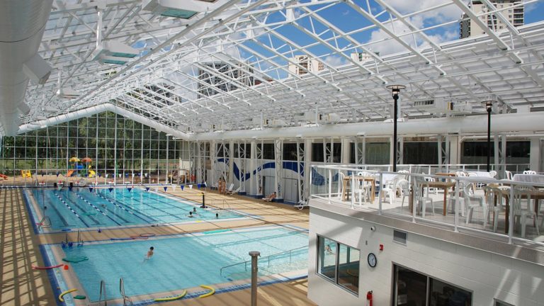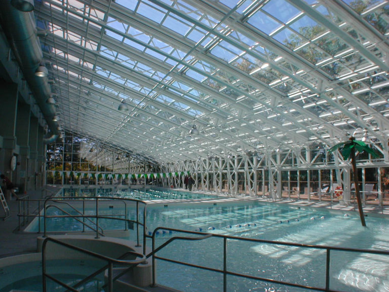 One of Toronto’s most exclusive private clubs, the Granite Club, approached OpenAire with a unique challenge. The members wanted their new pool and aquatic play area to have a minimal, unobtrusive building as its enclosure.