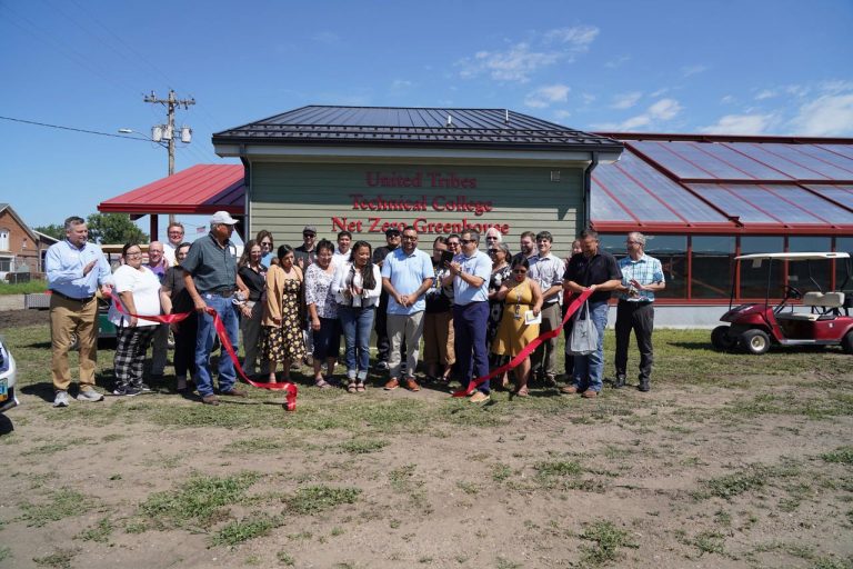 “”United Tribes Technical College marked a milestone in sustainable agriculture on Friday, Aug. 2, 2024 with the opening of its net-zero greenhouse, the first to be operated by a tribal college. This innovatively designed facility, powered entirely by solar energy, increases the accessibility of culturally relevant crops by offering a year-round growing season. Net-zero construction aims to achieve a balance of zero emissions, prioritizing energy efficiency while utilizing renewable energy sources.”